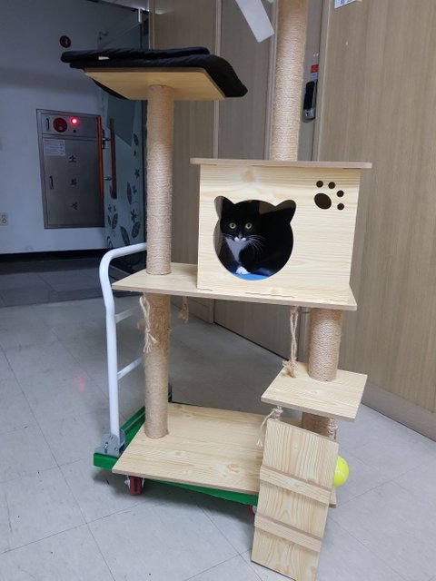 캣타워에서 나오지도 않고 .. 계속 동공확장된 상태로 움츠러들어있었음