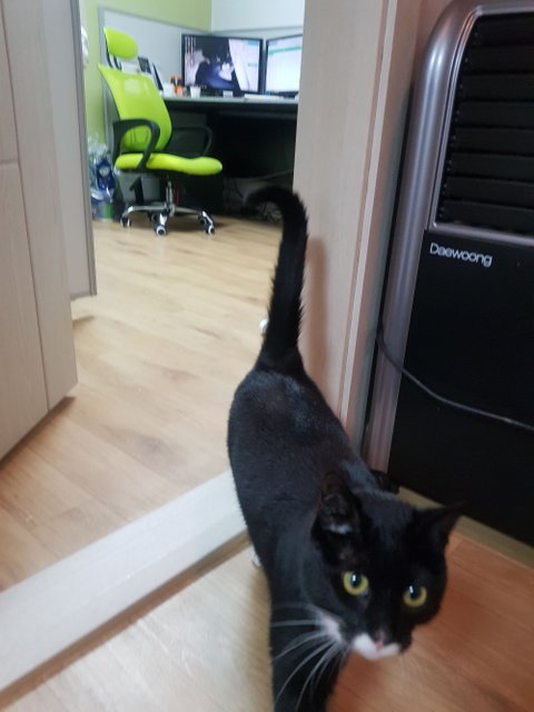 애옹소리 듣고 나오셔서 쭈그려 앉아서 우리 주인을 부르심