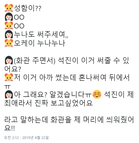 아쉽지만 그래도 스윗하고 다정한 석진이를 봐서 좋음 ㅎㅎ