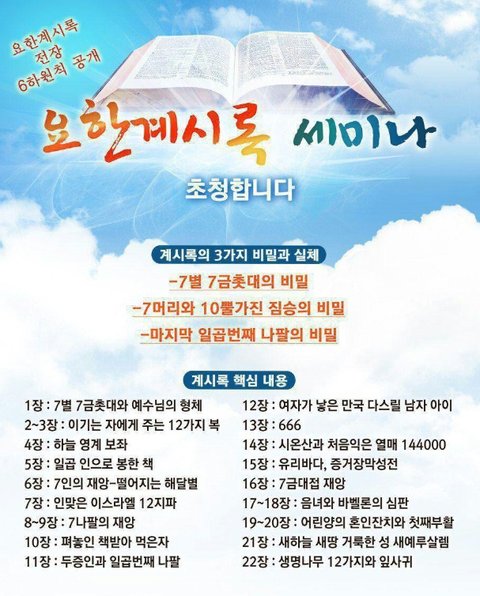 지금 대한민국 전역에서 "요한계시록 말씀 세미나" 의 바람이 불고 있는데요