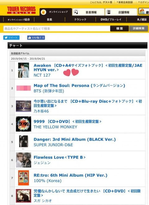nct 재현 ver 개인앨범으로 타워레코드 점포 종합 주간 1위함