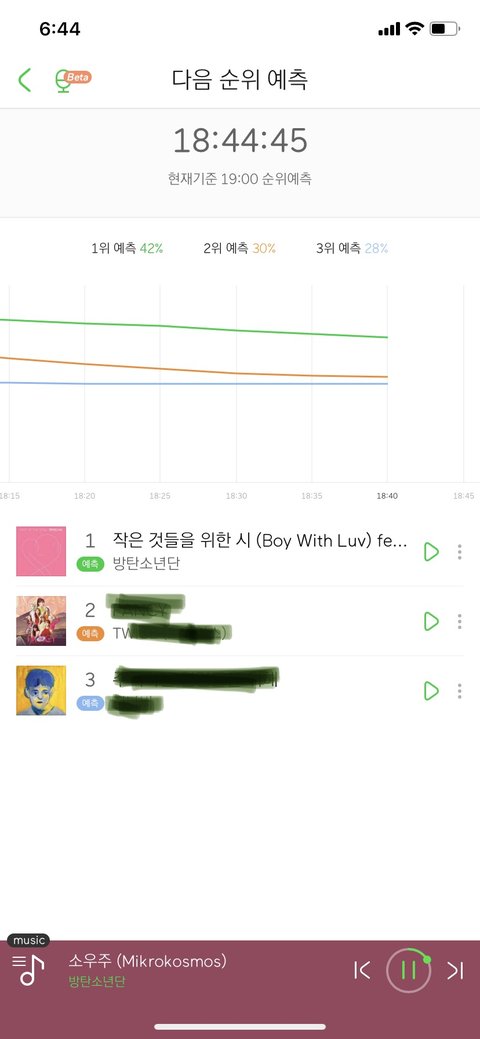 음원강자 ㅌㅇㅇㅅ분들 컴백하자마자 무섭게 2위로 치고 올라오셨어!!!!! 작은시랑 격차 야금야금 줄어들고 있고!ㅜㅜㅜㅜㅜ 스밍 까먹고 있던 아미 다시 컴백컴백 열스열스