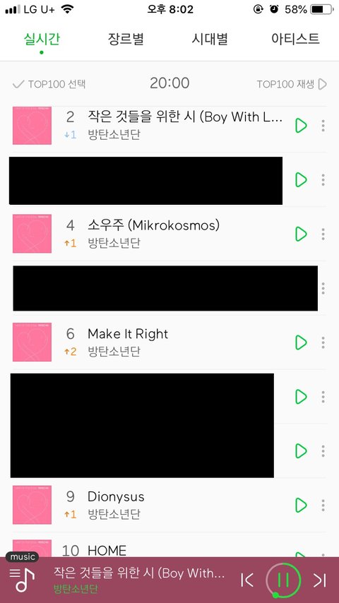 다들 위기의식 느끼고 스밍 열심히 돌리니까 수록곡 순위도 함께 오르잖아.