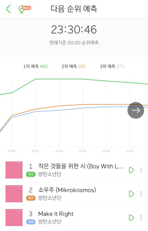 지금은 수록곡인 소우주가 2위 예측에 있어....