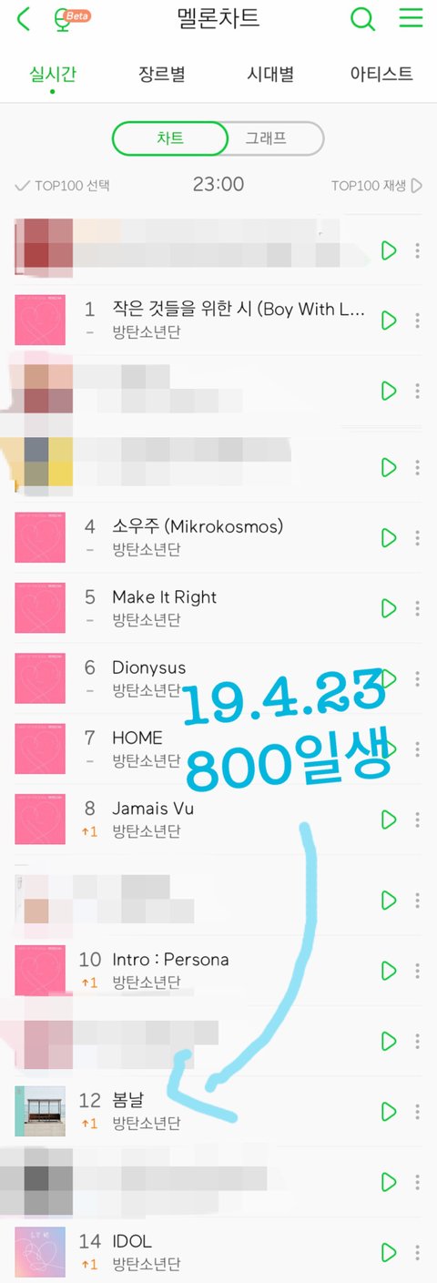 봄날 나온지 800일이자 차트인 800일