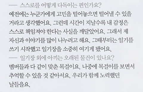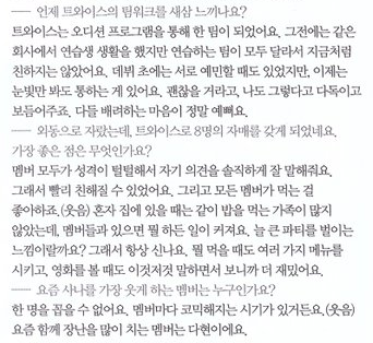 멤버별 인터뷰 간략