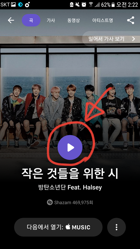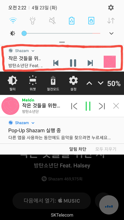 **근데 샤ZAM 찾은다음에 저거 꼭 재생해야 해? 상태바에 저렇게 올라오도록..? 2초 듣고 끄고 데이터 삭제함