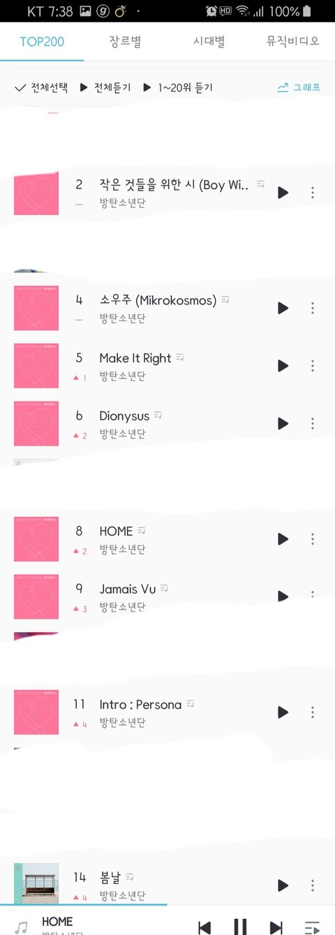 아침 차트 약간 좀 감동ㅠㅠ