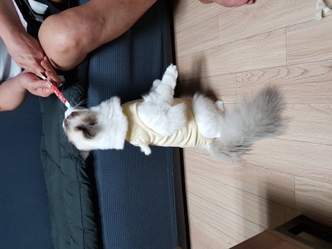 츄르가 바닥까지 내려가는 틈을 못참고 두발로 서버렸어요