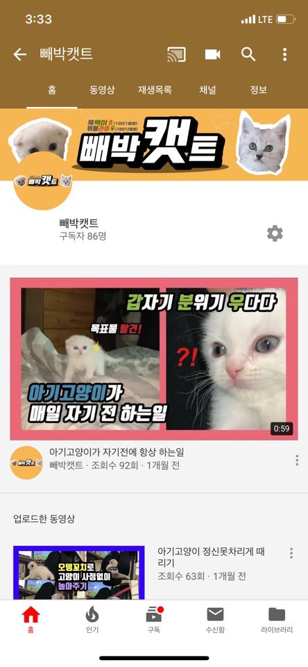 이건 우선 우리 냥이들 모습 담은 유튜브 채널이에여 많은 사랑 부탁~해요(이덕화)