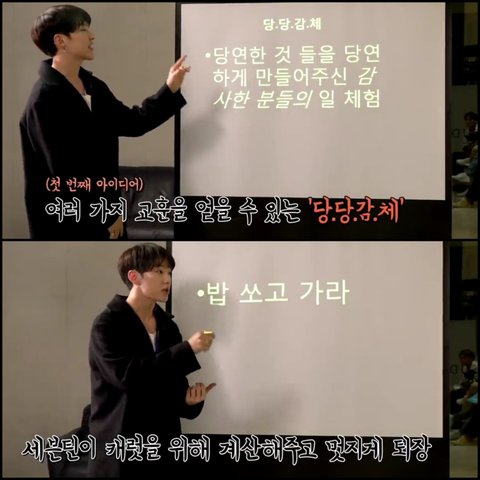 멤버들이 신입사원으로 아이디어내고 발표하는걸 보여줌