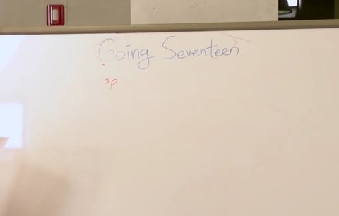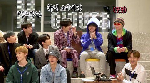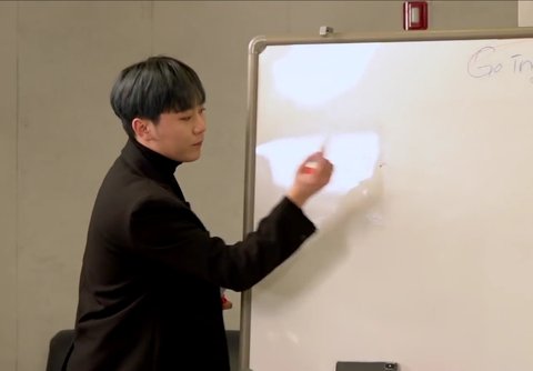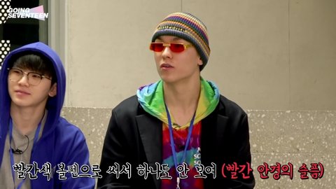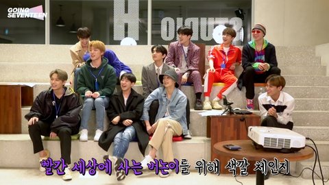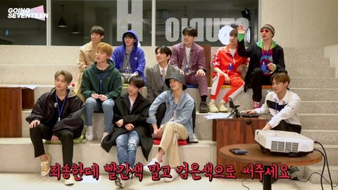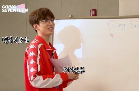 세븐틴 콘텐츠 발표 도중에 원우가 빨간 펜으로 글씨를 씀