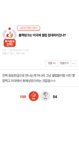 딱히 틀린표현은 아닌듯 톡선보니까 소시 원걸 몬스타엑스 갓세븐 엔시티 등 우리나라가수들 미국 연예인들하고 사진 많이찍고 친목했더만 맨날 도배되듯이 올라오는건 블핑뿐임 팬이나 소속사나 사진찍은거로 언플이 너무 심함 보고있으면 사대주의 찌들은 애들같아서 망신스러움 다른 가수팬들은 저렇게까지 오바안하더라