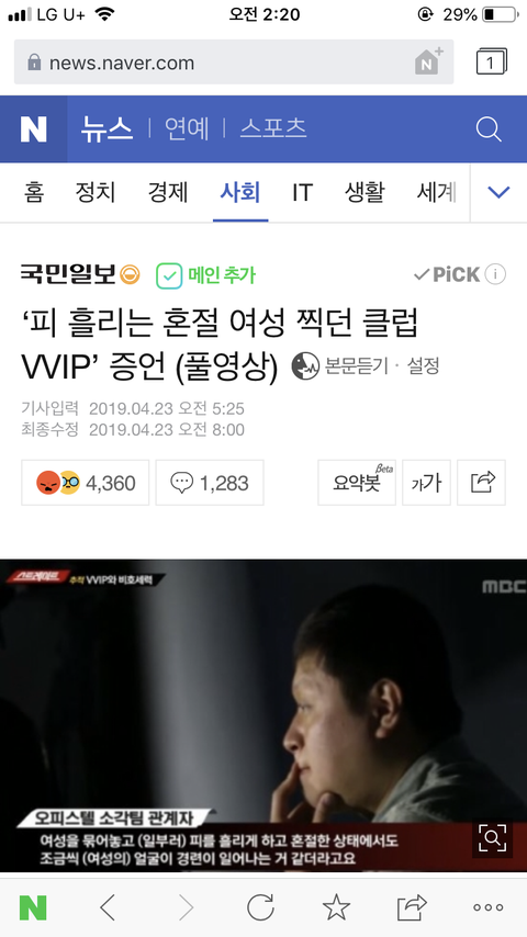 근데 이 기사는 실검에 올라오지도 않고, 메인뉴스에 잠시잠깐 걸렸다 사라졌어. (링크는 밑에 걸어둘게)