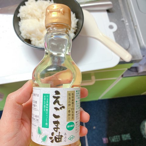 밥은 소금 약간에 들기름(투명 들기름, 일본에서는 음식에 넣어 먹기보다는 오메가 오일처럼 먹는다.)으로 밑간을 해두고