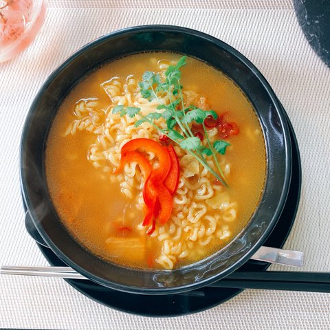 처음 구입해 본 찌개 라면도 끓였다. 좋아하는 고수로 토핑~라면 국물엔 역시 소주~~~~~