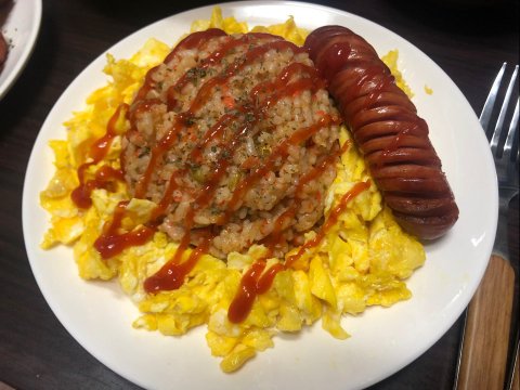 이건 어느날 만든 오므라이스에요. 소세지를 먹어야해서 찬밥있는거 볶아서 먹었습니다