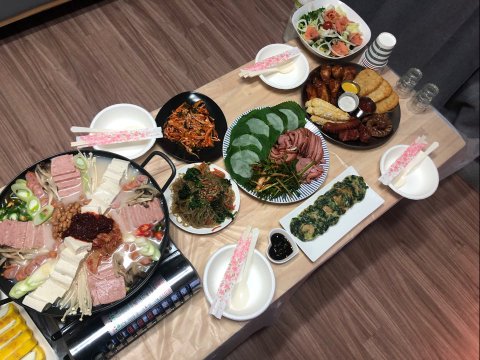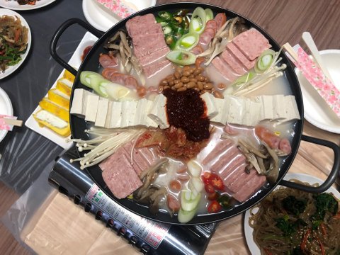 이건 남편친구들이 왔을 때 한거에요 성공한 계란말이와 부대찌개, 잡채 훈제오리 골뱅이무침 등등 해서 먹었습니다 ㅎ_ㅎ