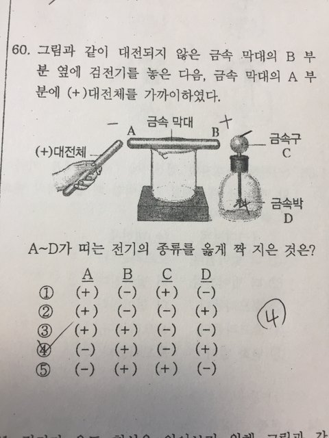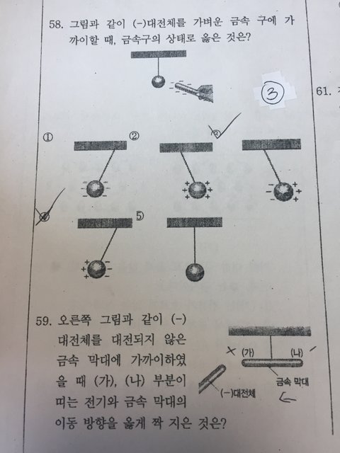 59번문제 - 대전체 쪽에 +전하를 띄면 대전체에 가까이 가고 -전하를 띄면 밀어지니까 둘다 맞는거 아닌가요,,58번도 동일한,,