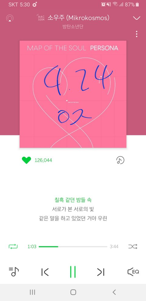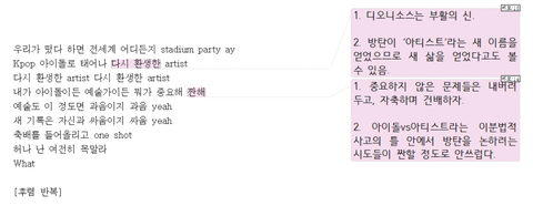 물론 다른 방식으로 본 이삐들도 많겠지? 난 방탄 곡들은 다양한 해석의 여지가 있어서 좋드라... 본인들도 획일적인 답을 말하지 않으려고 노력하고. 암튼 사랑한다고 으윽