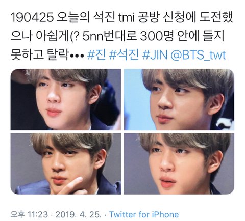 석진이 공방신청 광탈했댘ㅋㅋㅋㅋㅋ
