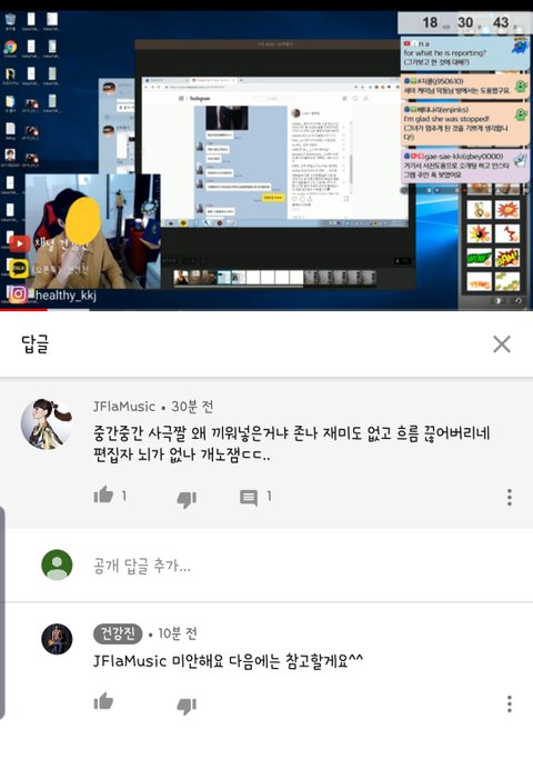 댓글에 방송 녹화본인데 짤을 많이 넣어서