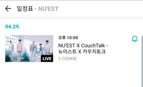 29일 10시 뉴이스트×카우치토크 쁘앱