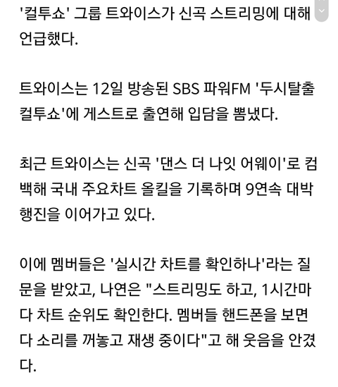 개귀엽당 머글인데 트와 노래 자주 들음 이번 노래 좋아 ㅠ ㅠ 근데 팬들아 혹시 트와 인스타 개인 계정은 없닝
