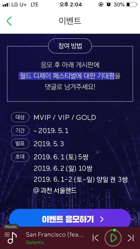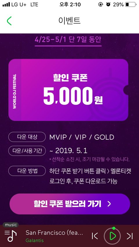 서울랜드에서 하네작년에는 잠실이였나 그랬던거같은데무튼 멜론vip헤택관에서월디페 5천원 할인쿠폰 주는 이벤트랑월디페 초대권 주는 이벤트도 하더랏
