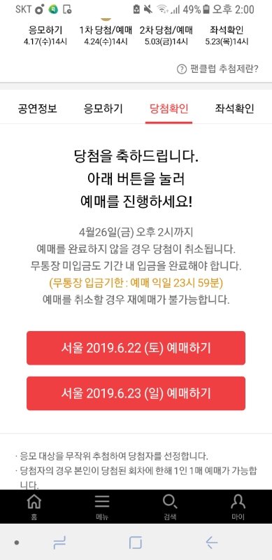 친구 A는 양일 당첨이 되었으나 금전상 토요일만 가겠다고함