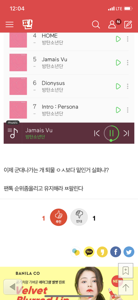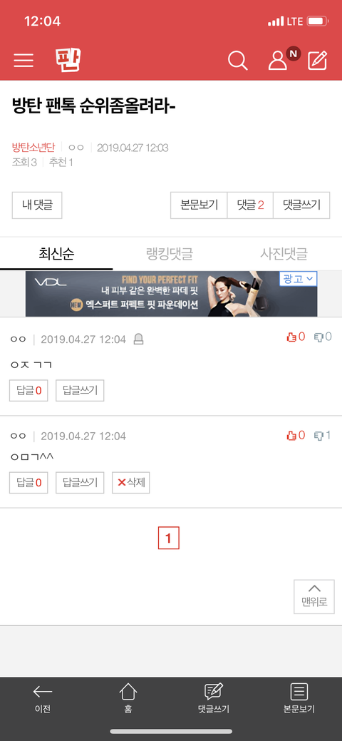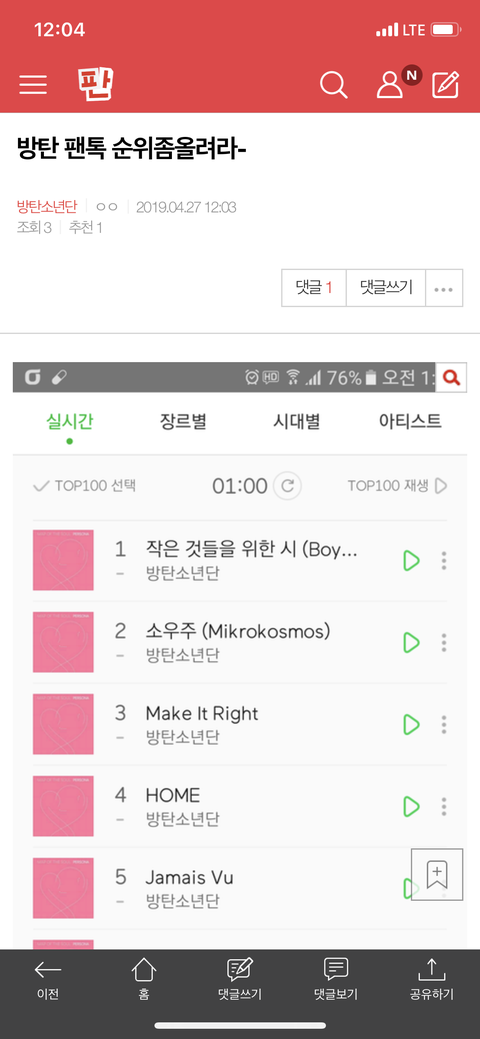 밑 방탄 팬톡 순위 여기서봐 댓도
