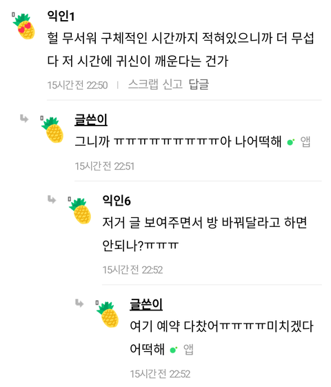 <익들아 나 모텔왔는데 겁나 소름돋아...>