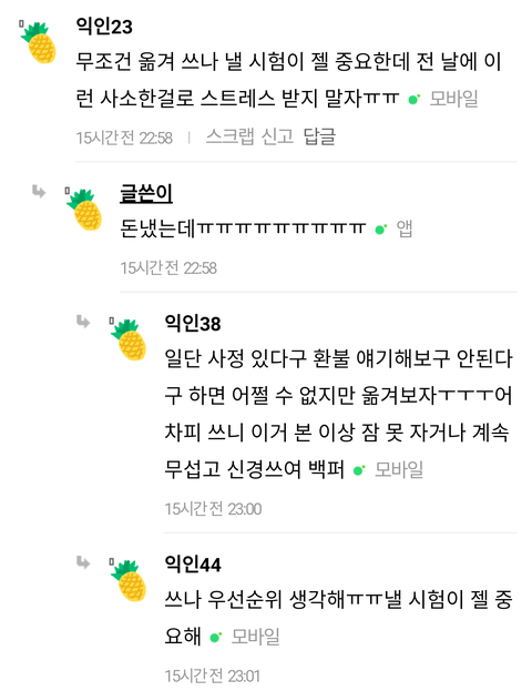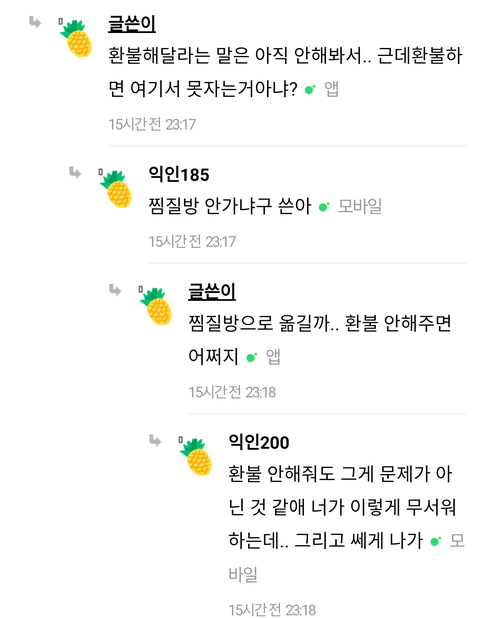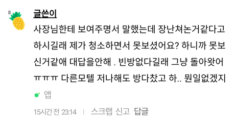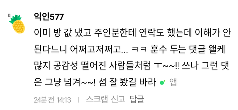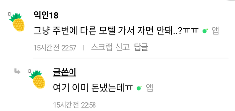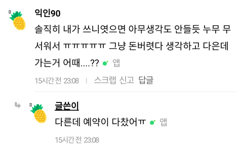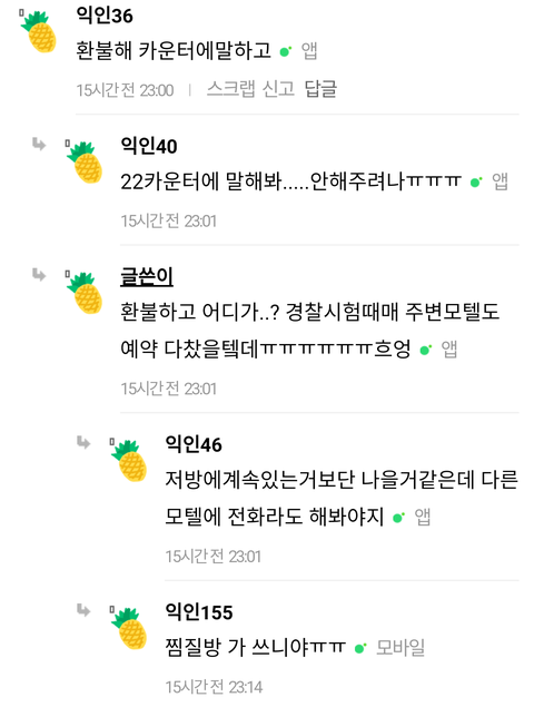 근데 조언하는 글에도 어떡하지ㅜ다른방은없고 환불은안해줘ㅜ 이런 웅앵웅 답글만 남기는게 너무 나한테는 이해가 안갔음...