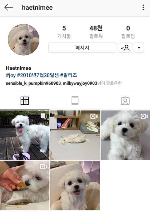 그 계정은 바로 조이의 반려견 햇님이 계정이야!