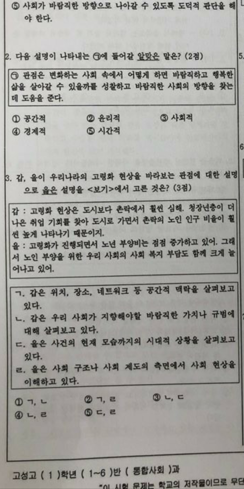 고1 통합사회 이거 답이 뭐야??
