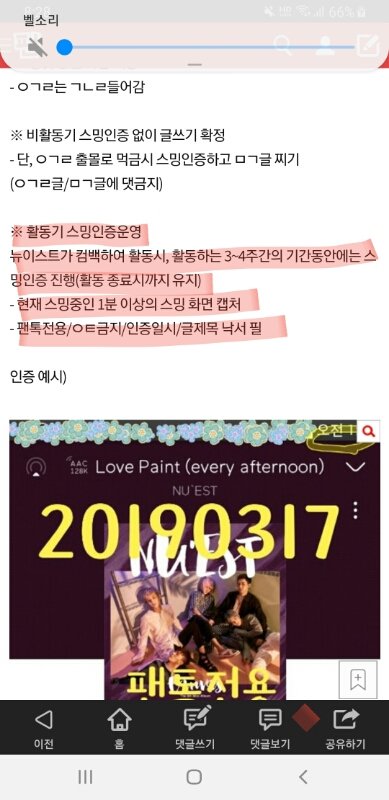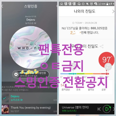 4/29 p6:00 뉴이스트의 컴백을 시작으로 활동이 좋료되는 시점까지 팬톡은 스밍인증제로 전환된다는걸 잊지마 잊지 말아줬음해♪