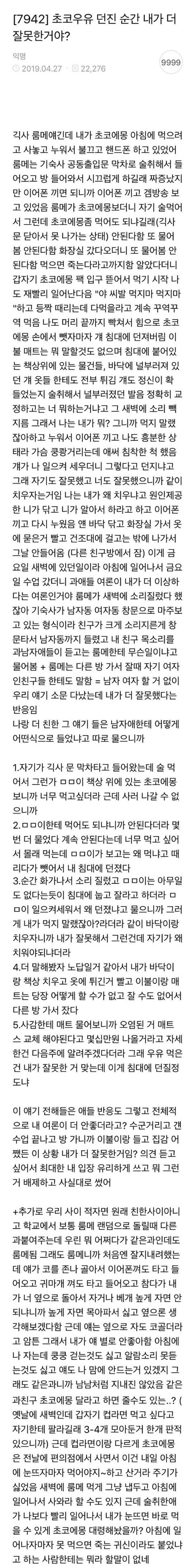 누가 발단이었는지 보면 답 나오지. 애초에 먹지말라는거 안먹었으면 이런일도 없잖아 ㅋㅋㅋ