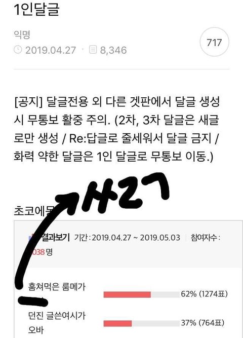 그런데 이런 흔한 뻘글을 굳이 클릭해서 조회수 늘리고 반대 누르고 댓글 달면서 톡선 보내고 북치고 장구치는 거 보니까 판녀들 또 여돌로..