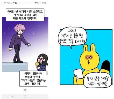 + 여담이긴한데 홈마가 자랑이냐는 댓글 정도는 예상했지만 미화해주면 고맙다고 생각하라는 댓글은 좀 맘이 그렇다 이 글 쓴 이유도 저렇게 삶이 예쁘게 포장되는게 현타라는 건데...그게 전달이 잘 안된거 같아서 그건 조금 아쉽넹...좀 더 글을 잘 써볼게 ㅎㅎ;;