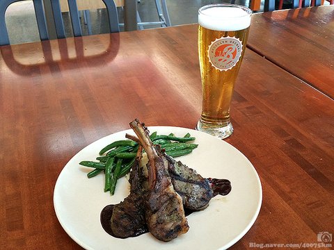 그릴에 구운 양고기를 접시에 받고 나니 향이 훅 올라오면서 갑자기 맥주가 너무나도 땡기길래 한 잔 반주삼아 마셨지요.