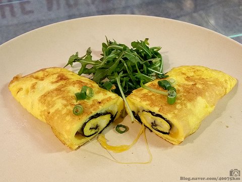 코리안 스타일 치즈 오믈렛. 즉 달걀말이입니다. 창고에 김이 있길래 스페셜 메뉴로 만들어 봤는데 의외로 잘 팔렸네요.