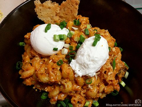 게다가 실제로 먹어보면 매콤한 김치와 맥앤치즈가 꽤나 잘 어울리기도 하구요. 치즈 떡볶이와 비슷한 풍미랄까요.