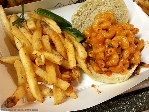 그리고 좀 더 미국식으로 만든 김치 맥앤치즈 버거도 있습니다.