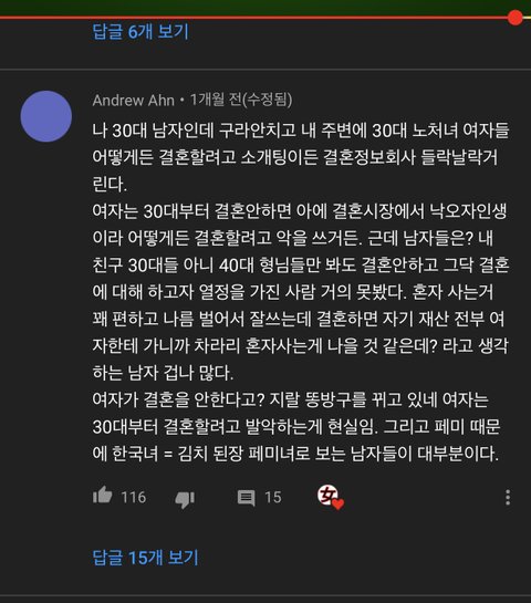 요새 유튜브 30대 남자 결혼에 대한 반응