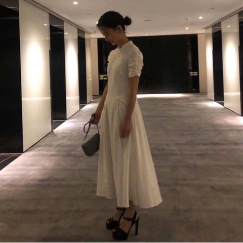 흰 드레스 입고 앉아있는 모습이 영락없는 인형 느낌나, 관절인형? 같아.