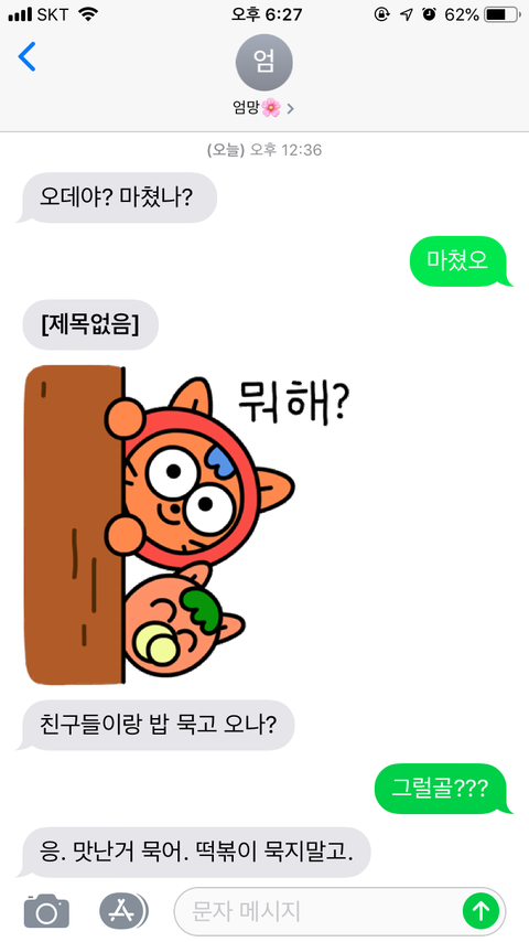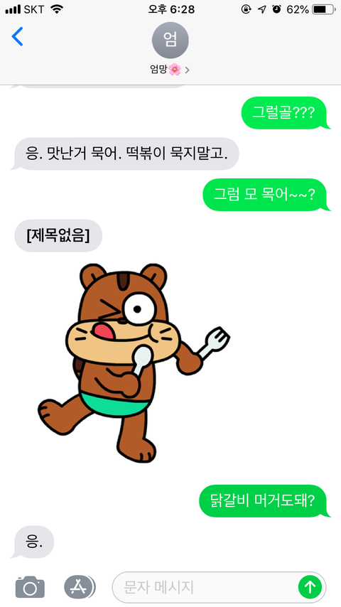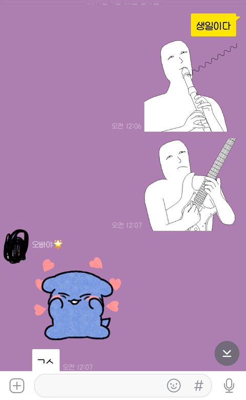 이모티콘때문에 더 기야워 닭갈비 먹는다 하고 돼지방구(돈까스라는 뜻) 먹은건 안비밀