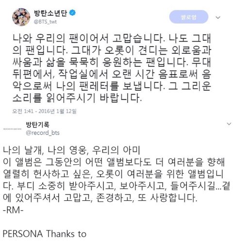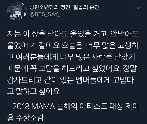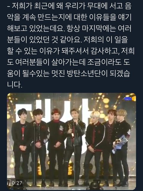 모든 것을 내려놓고 싶은 순간에도 아미 생각해서 다시 일어선 게 방탄인데