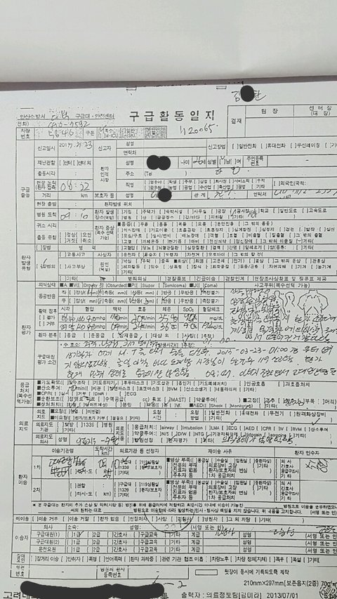 발견현장에서 병원으로 출발하였고,