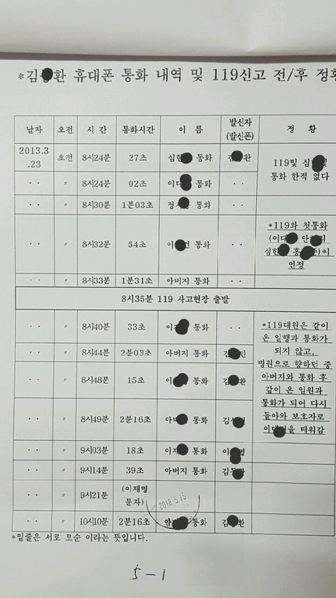 08시22분 도착한119는 아들핸드폰 발신기록에 24분에27초를