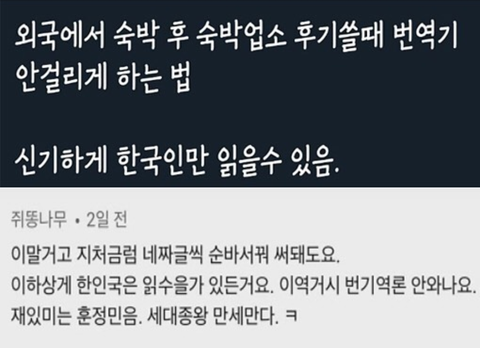 한국인만 읽을 수 있는 숙박후기를 본 외국인